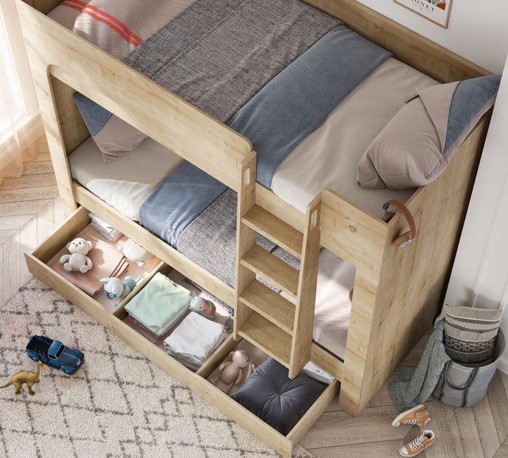 The Mocha Bunk Bed can also be used as two separate beds when needed, offering a more flexible approach to children's and youth room designs.