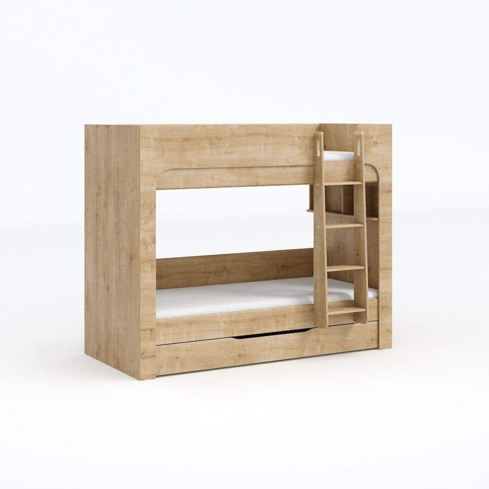 Combining the natural beauty of raw wood with the durability of metal and aluminium materials, the Mocha Bunk Bed features a movable ladder, making it easy to use in any room.