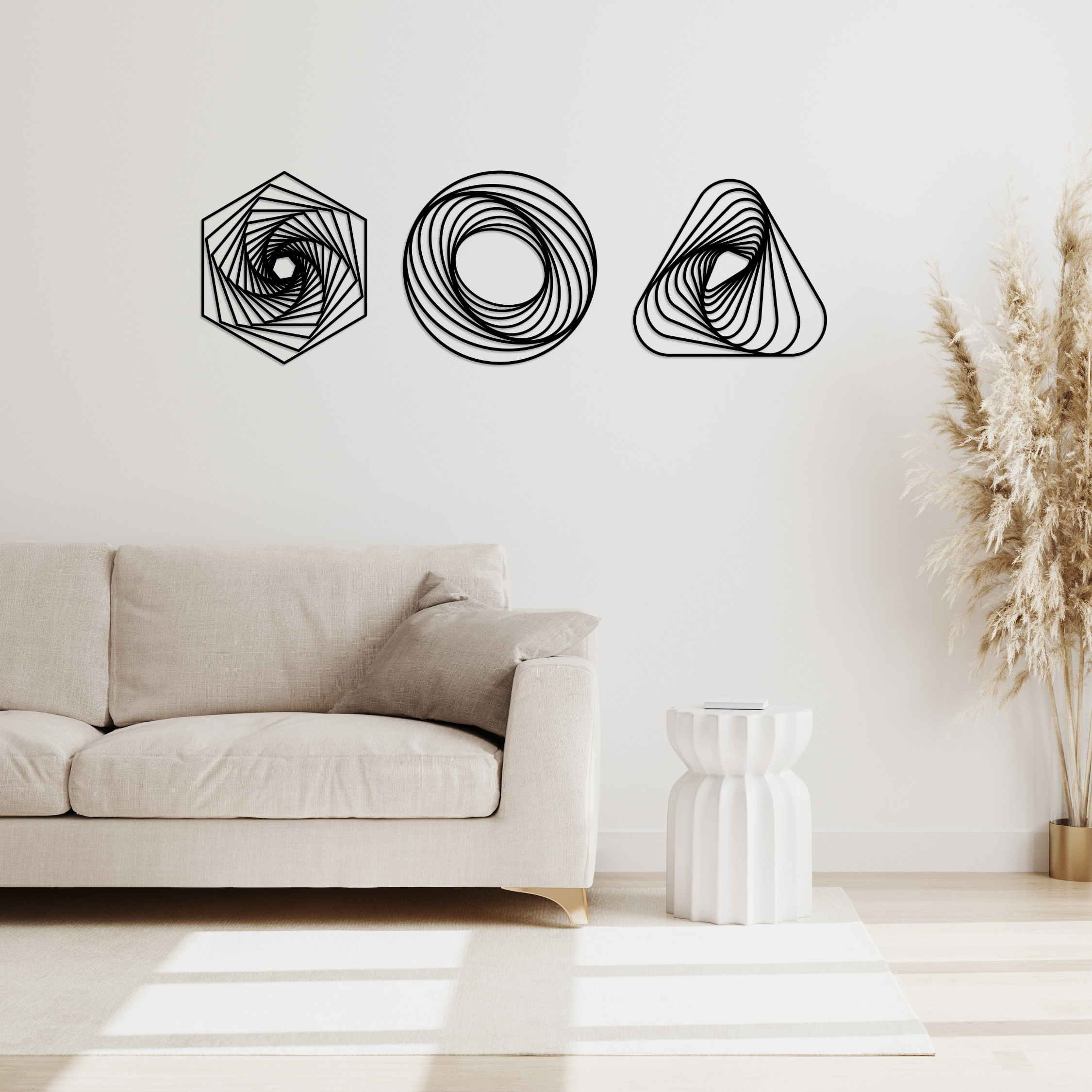 Each piece is mounted about 0.6 inches (1.5 cm) away from the wall, creating a stunning depth and visual appeal.