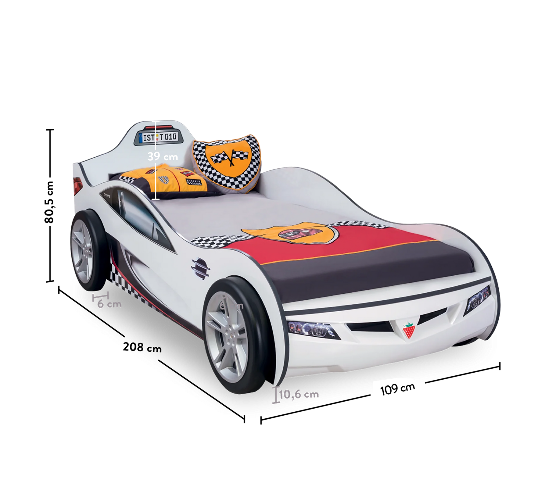 Designed for little racers with big imaginations, the Racecup Car Bed White brings rally-inspired energy straight into your child’s bedroom. Featuring a 3D wheel design and a bold, sporty front, this bed doesn’t just look like a racecar — it feels like one.
