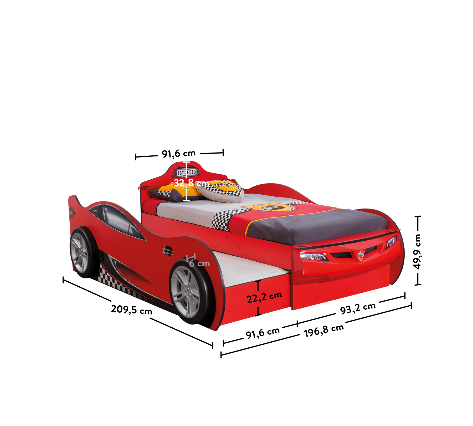 Designed for little racers with big imaginations, the Racecup Car Bed Red brings rally-inspired energy straight into your child’s bedroom. Featuring a 3D wheel design and a bold, sporty front, this bed doesn’t just look like a racecar — it feels like one.