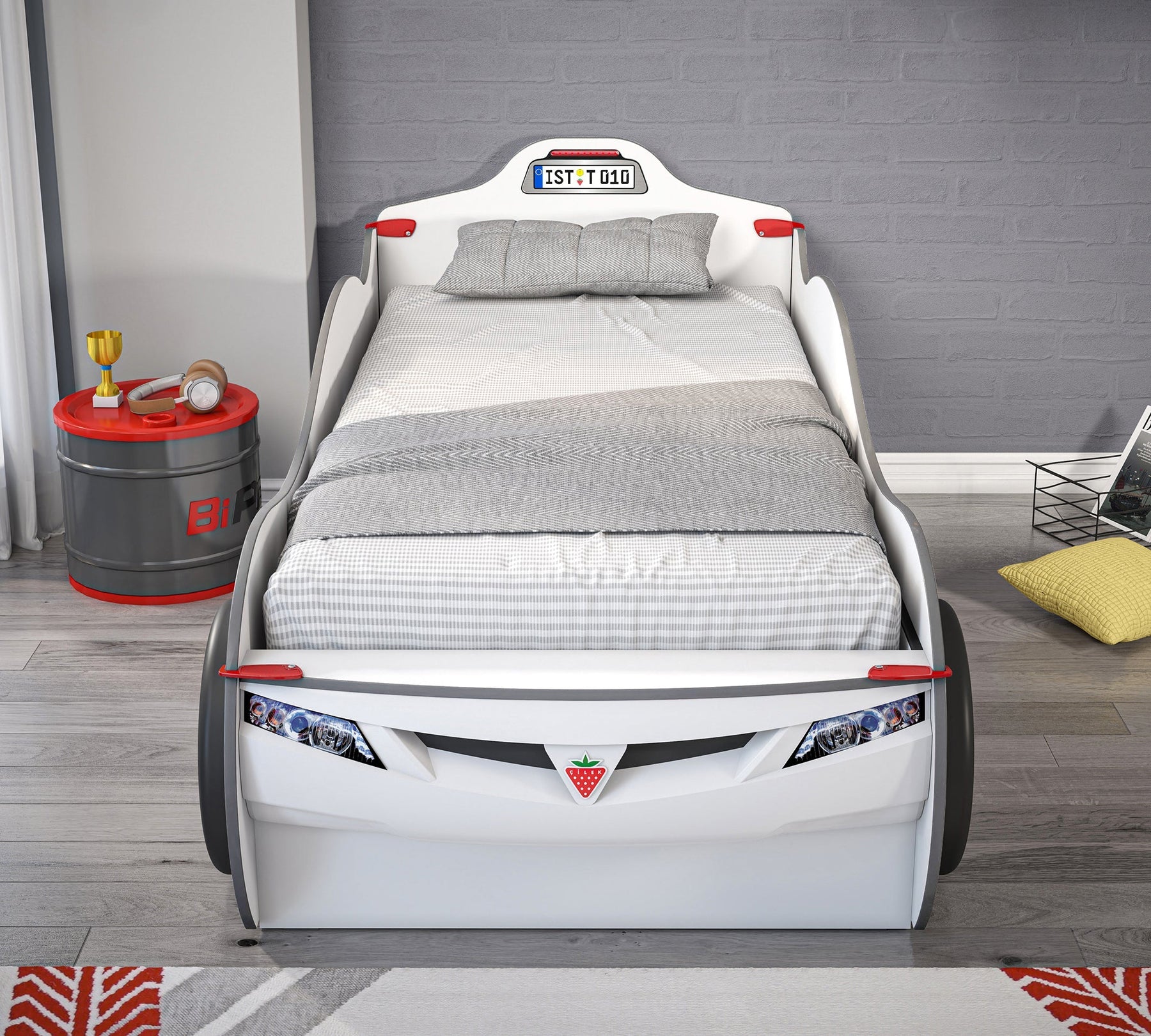 Designed for little racers with big imaginations, the Racecup Car Bed White brings rally-inspired energy straight into your child’s bedroom. Featuring a 3D wheel design and a bold, sporty front, this bed doesn’t just look like a racecar — it feels like one.